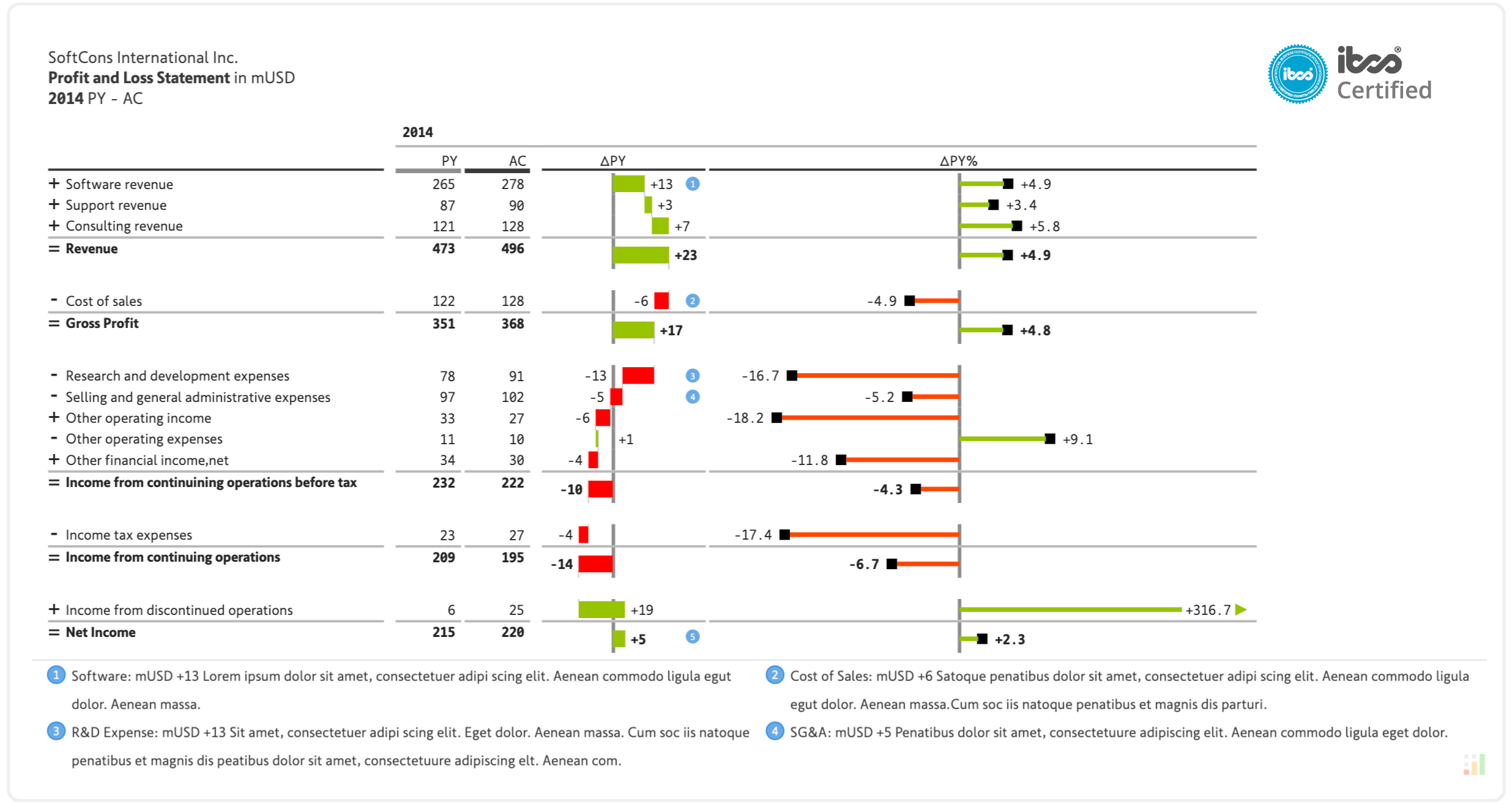 Aprovecha las plantillas de un solo clic para implementar informes avanzados de variación / IBCS (Normas Internacionales de Comunicación Empresarial).
